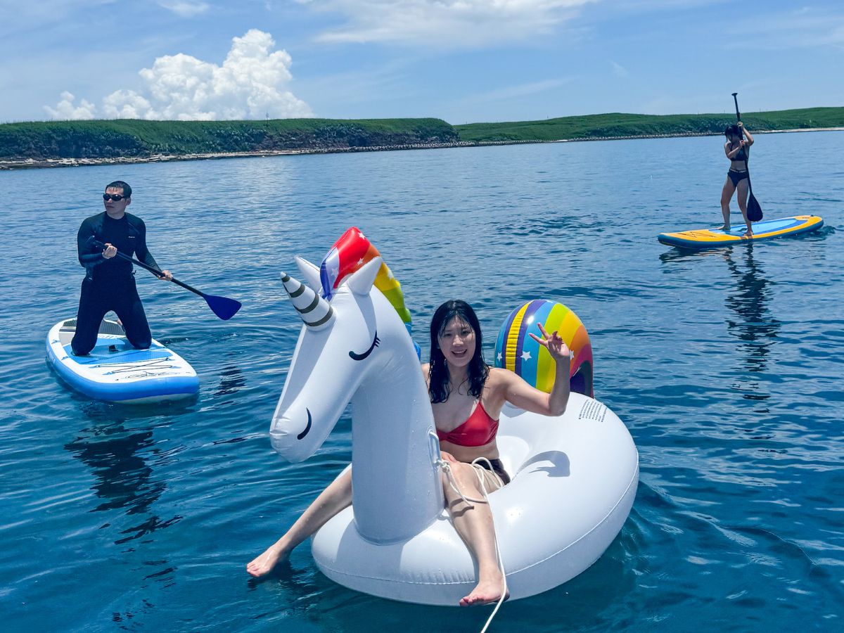 💰費用包含: 無度數面鏡呼吸管、水下推進器、SUP立槳體驗、人魚裝體驗、彩虹小馬造型泳圈、午餐、水域遊憩險、GORPO攝錄影