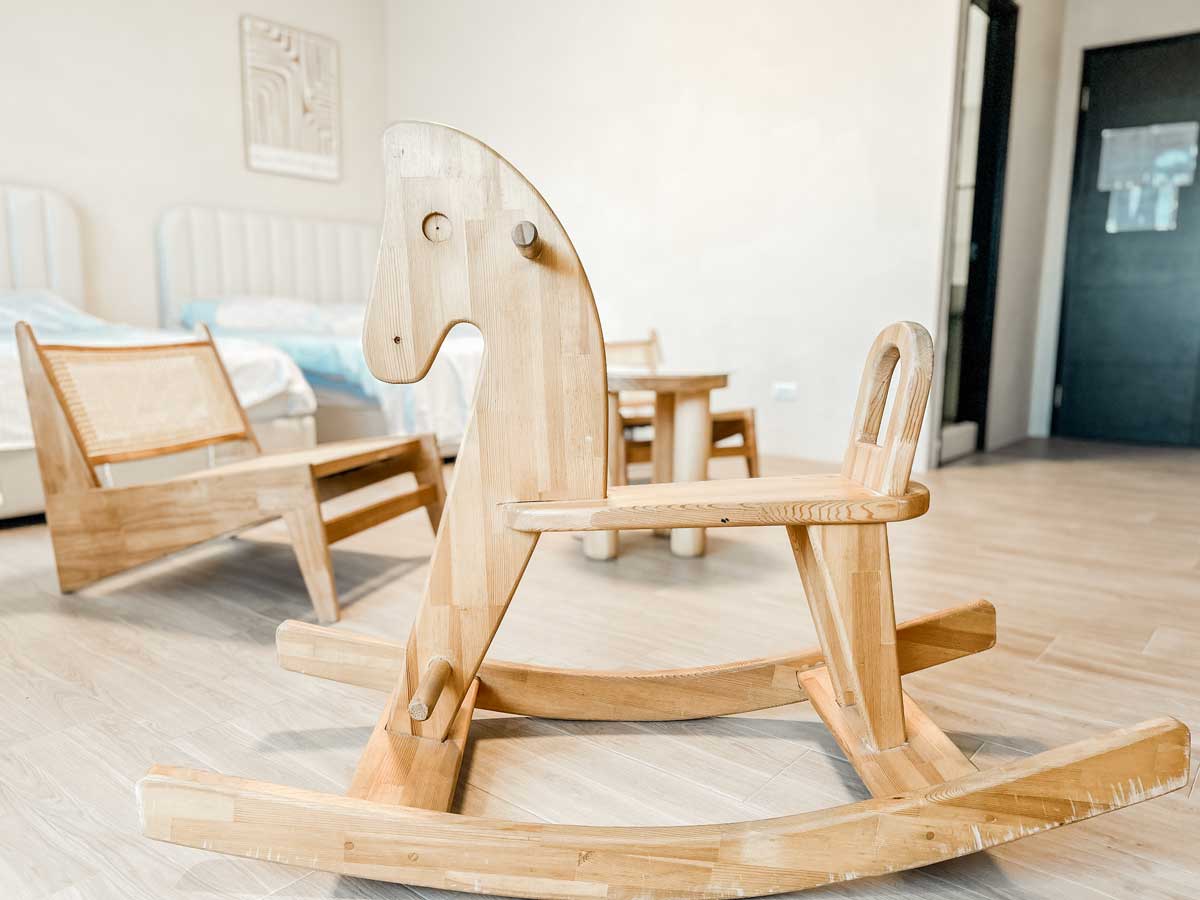 淳夏文旅以「奶茶色調 + 原木質感」為主軸,創造出溫柔又療癒的氛圍,整體空間帶有一種「日系雜貨風」的感覺,讓人一踏進民宿就彷彿進入 IG 美照的拍攝場景。